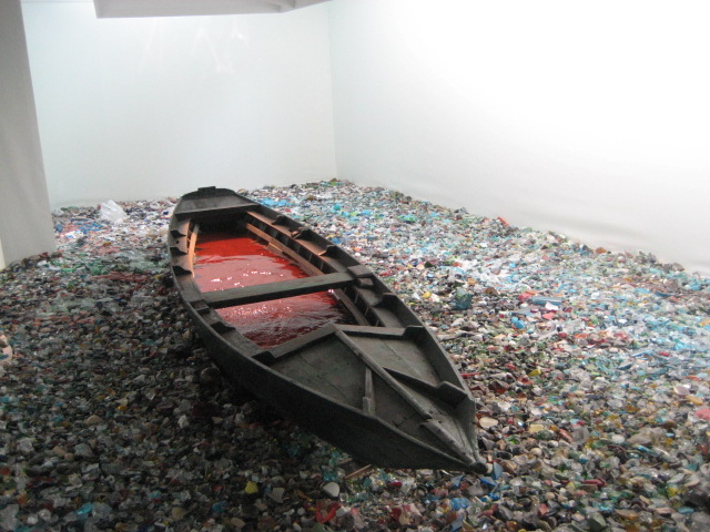 FINLAND – Maariya Wirkkala, a boat filled with bloodred liquid slowly mechanically rocking upon an ocean of broken colourfull shards of glass.