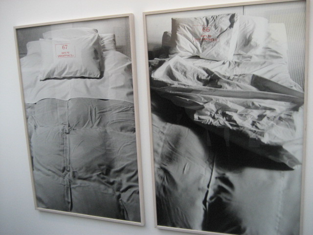 67 days to Unhappiness, Sophie Calle photographs her made and unmade bed counting the days post altercation with her lover. The icon of “my bed” is a tender one. Redundant return, new awakenings, nightmares and aspirations of a new day, Sophie Calle series are repetative but remain sentimental and introspective, as Sophie Called does heartbreak best.