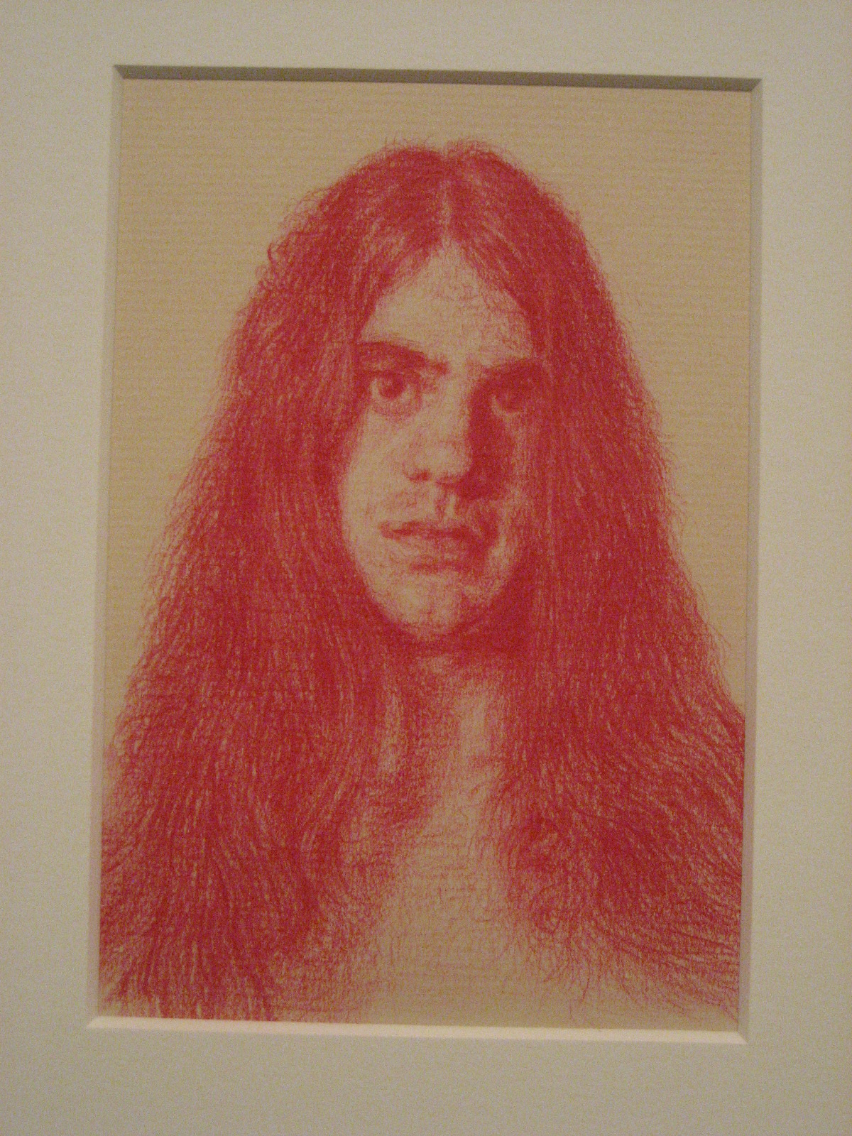 Contrastly, Shearer draws (in bic pen) his hardrock heros in a very tender way, and paints them in a style remincent of Edvard Munch.