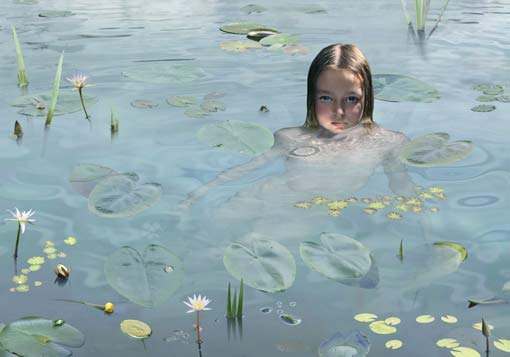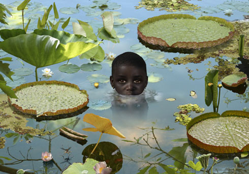Ruud Van Empel sweet tender photo portraits of children in a fantastic mythical landscape created by layering digital images.