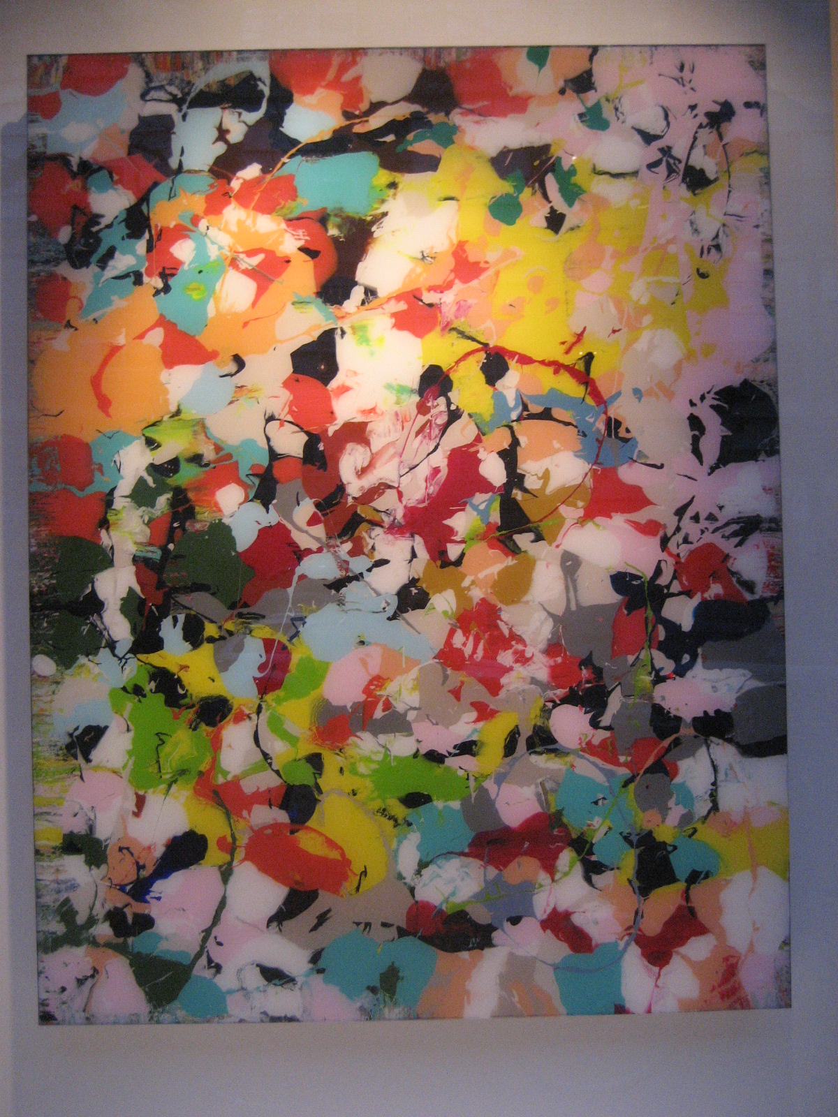 Stunning technique on display at Galerie Lausberg. Michael Burges paints energetic layers on to plexiglass, once dried they are sandwiched together resulting in a tenacity of movement in abstraction.