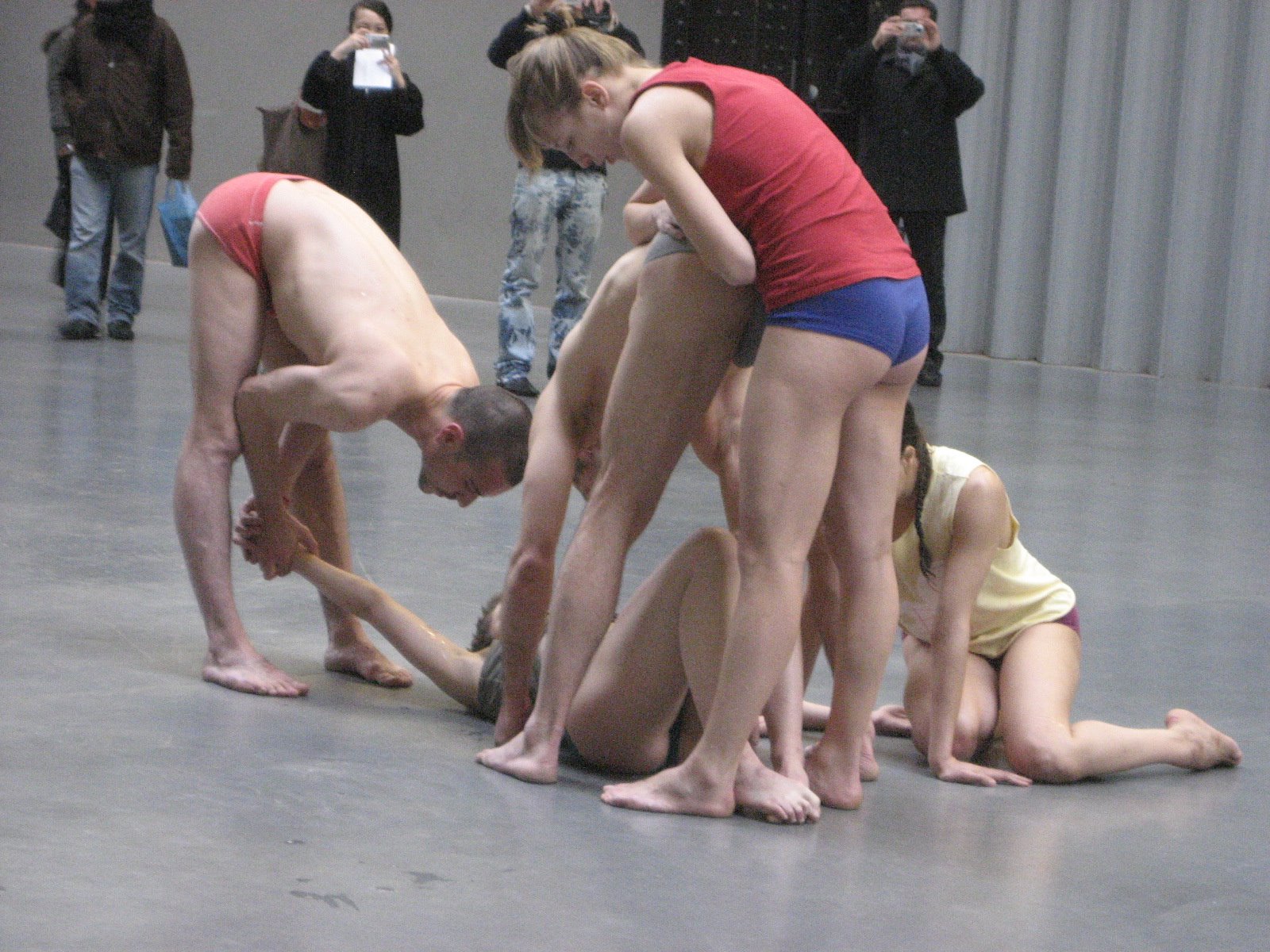 LIVE : LIVING CURRENCY, a two-day exhibition of performance art in contemporary dance. X-Event 2 autonomous units imposing the limitations of the individual in awareness of a place. The dancers move slowly and thoughtfully around and towards each other. Subtly touching, holding, posing, spitting, creating the distance and the interconnections between the whole and the individual.