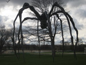 Meanwhile, in the Jardin de Tuilleries, stalkes Lousie Bourgois’ giant spider sculpture. This sculpture has been featured in outdoor exhibitions around the world, from Spain to Japan. Coincidence or not, it has hatched tall ominous legs arching towards an erie dark Parisian sky, at the moment the weather seems to embody this piece. A second sculpture is also on view, indoors, at the Centre Pompidou.