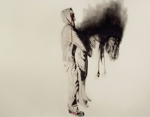 His works are provocative nostalgic and familiar. His reoccuring guy in a hoodie is every where out side, yet in his paintings cast an erie familiarity in the scenes that make you never want to go camping again. His works are a brilliant mix of folklore and contemporary media.