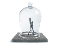 By far one of the most compelling artists works I saw in Montreal were the sound sculptures of Charles Stankievech at Galerie Donald Browne. Horror Vacui counterpoints the transparency of sight with the density of sound. Using Alvin Lucier’s compositional technique of reiterative recording, turn-of-the-century vacuum bell jars become the instruments to create micro-soundscapes. The lyrics of the Velvet Underground, in the bell jars haunting whisper “If you close the door, the night could last forever. Leave the sunshine out, and say hello to never”.