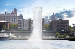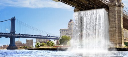 Waterfalls, a major new work of public art by internationally acclaimed artist Olafur Eliasson. The exhibition of four man-made waterfalls of monumental scale are on view until October 13 at four sites on the shores of the New York waterfront.