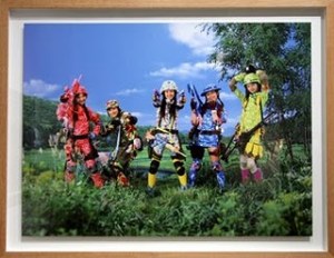 Mr. highlights these typical Japanese kawaii girls weilding plastic guns in technocoloured camoflauge army fatigues, being cute and violent.