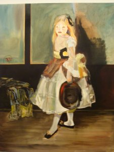 She is a painter’s painter, and uses historical paintings to navigate through the development and build up of the heavy drapery in contrast to the highly reductive facial features.