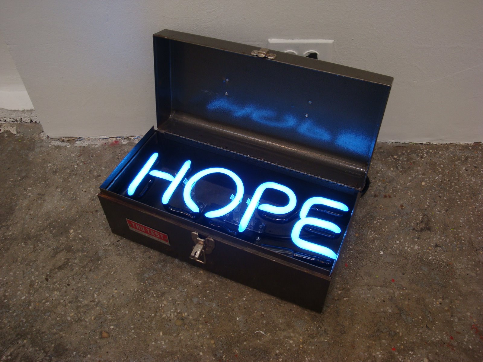 I love Andrew Junge, Pandora’s Box – a metal tool kit with neon hope.
