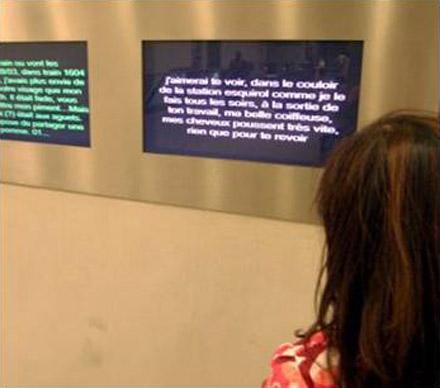 Subway Love Letters is an new interactive installation work by Sophie Calle launched in Toulous France. Transport Amoureux allows passengers to send love messages on station screens through a specific website, as away to announce fleeting love to another train rider.