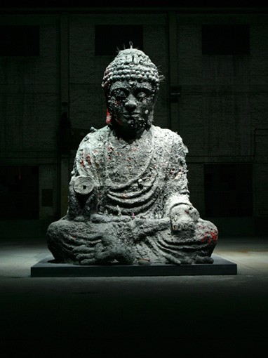 Rulai is a massive 5.5meter tall sculpture created with ash steel and wood. Skulls, bones, and unidentified remnants build up the layers of this pensive Buddah.