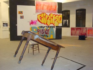 The orange hug wall with built in arm sleeves. The pile of sawdust with pingpong balls. The Dunkin Donuts bags with robotic interiors that rolled and crawled around the floor in an erratic fury.