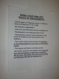 Bring Your Own Art BYOA marked the end of the X-Initiative, which was a one year long contemporary art program, housed in the former Dia Chelsea space.