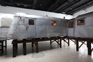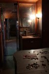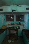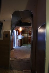 Nelson conjoined four vintage mobile home trailers forming a dilapidated vacantly inhabited space.
