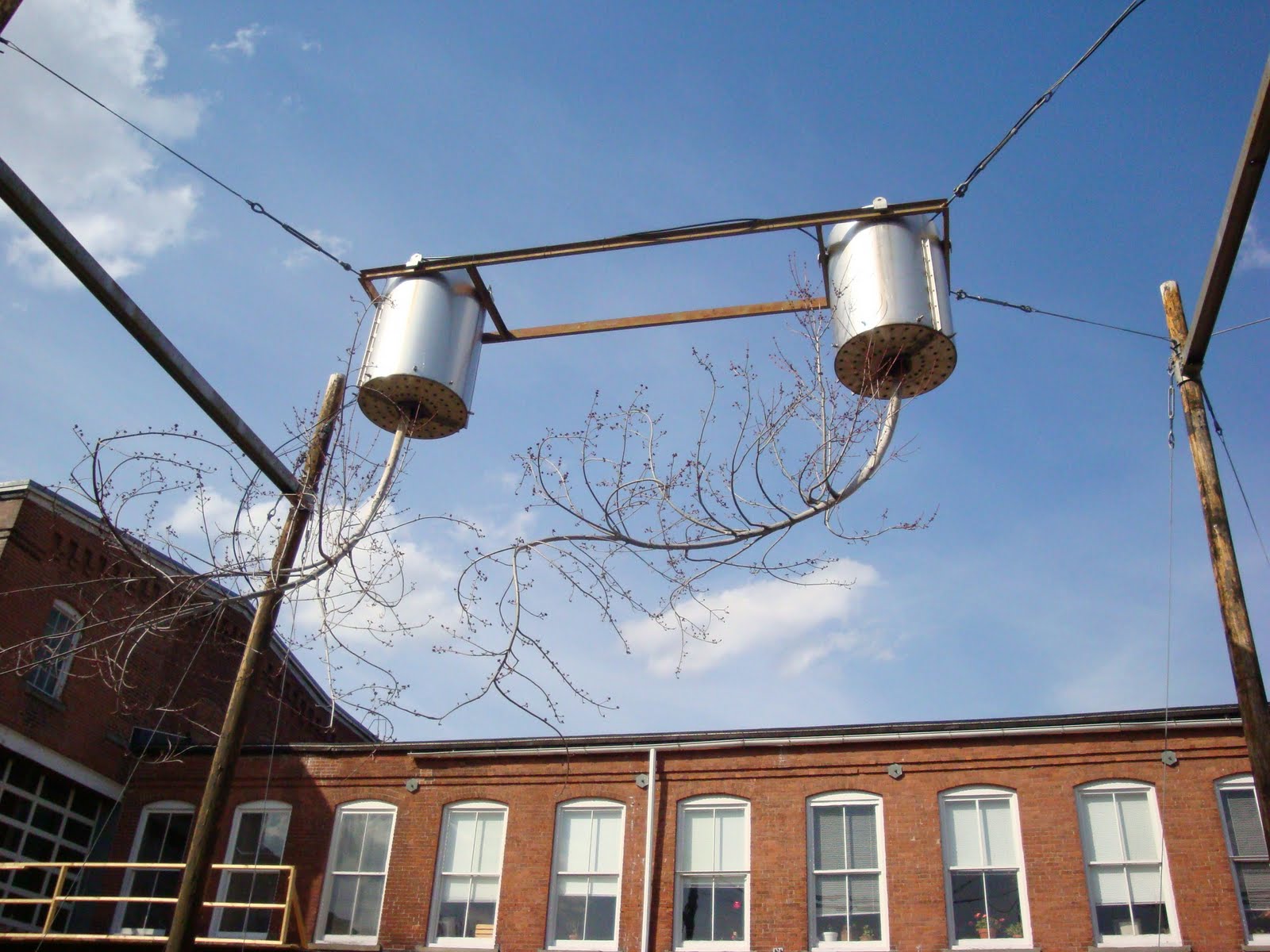 Natalie Jeremijenko: Tree Logic – Tree Logic, the art of the piece is not found in its condition at any single point in time, but in the change of the trees over time. Trees are dynamic natural systems, and Tree Logic reveals this dynamism. The familiar, almost iconic shape of the tree in nature is the result of gravitropic and phototropic responses: the tree grows away from the earth and towards the sun. When inverted, the six trees in this experiment still grow away from earth and towards the sun – so the natural predisposition of trees might well produce the most unnatural shapes over time, raising questions about what the nature of the natural is.
