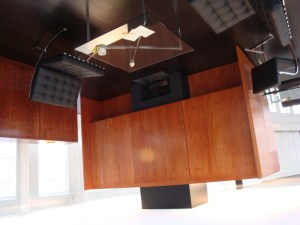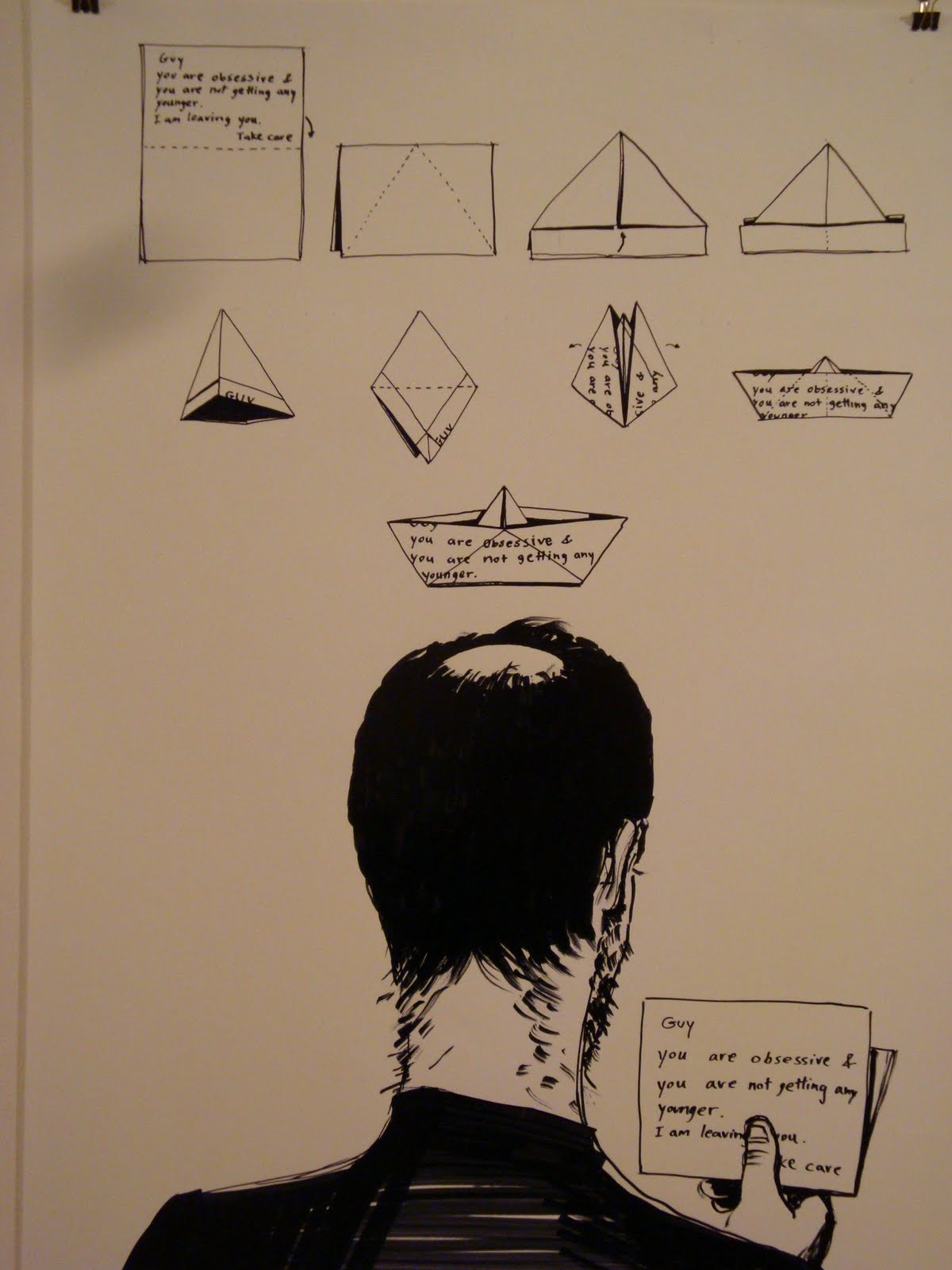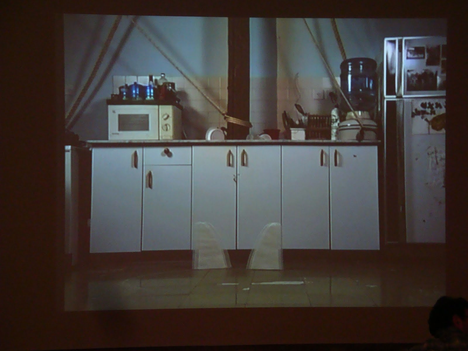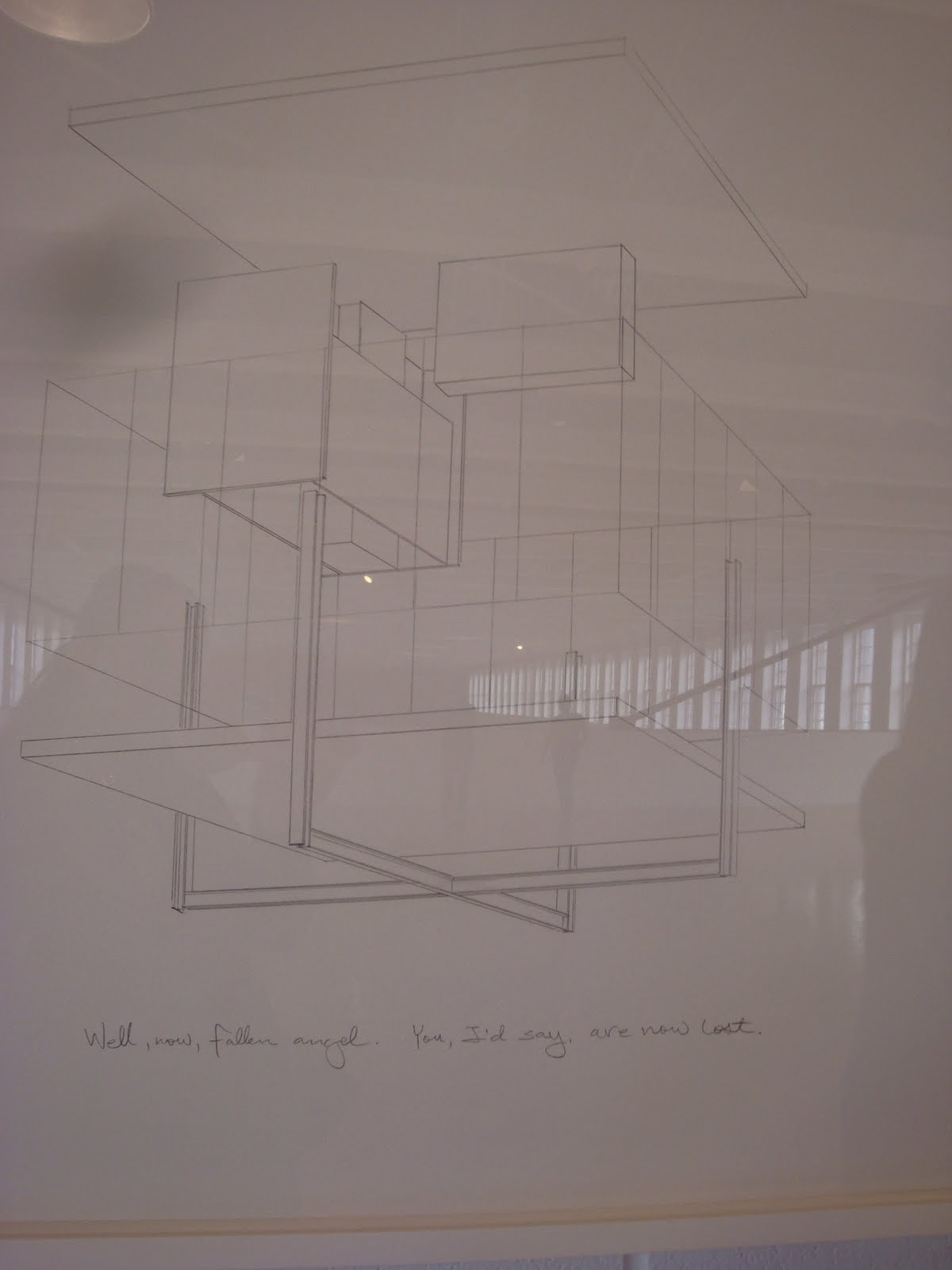 The phone rings and a narrative is played from within the glass house. A frustrated couple trying to sort out the story.