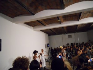 Rashaad Newsome and Alexander Wang was a vocal performance amazing beyond words. Newsome uses sound bites performed live to create a symphonic harmony of gossip sounds.