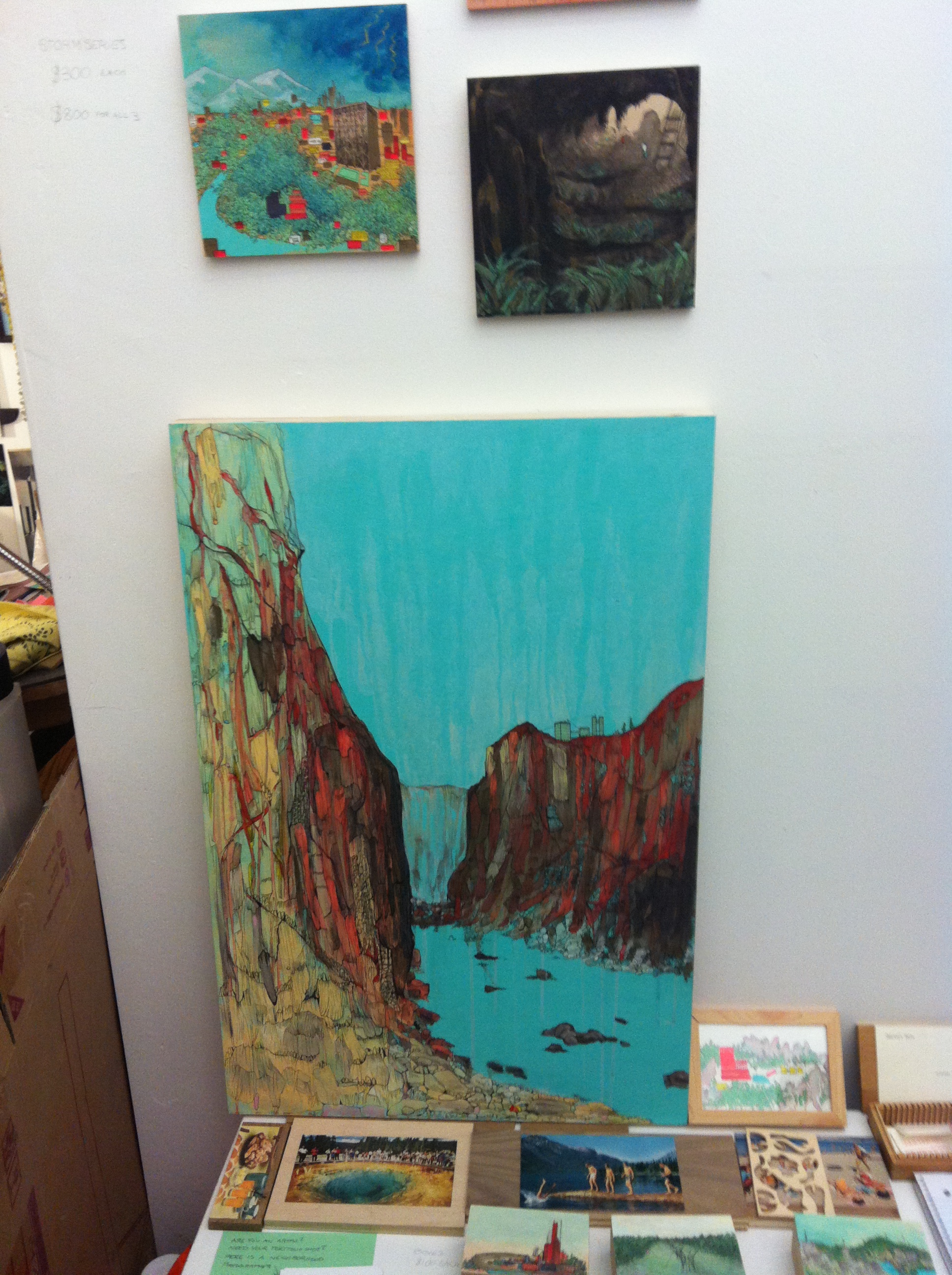 The icing on the delicious treat that was the Tibbles studio visit, was instead of the typical exhibition contact info postcards, Tibbles thumbtacked a ‘missing cat’ tearsheet with his contact info to the door. A work of art on its own right.