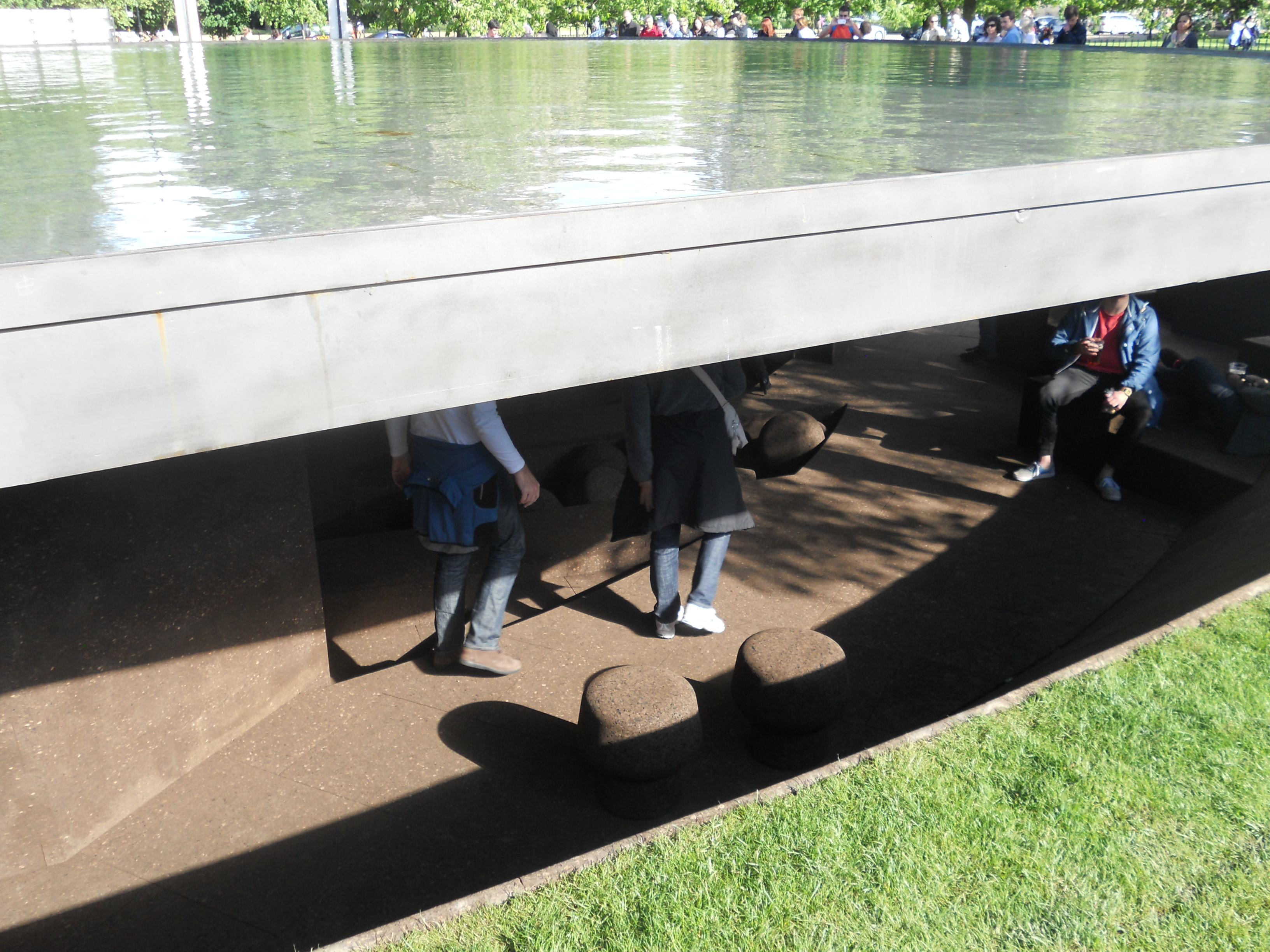 Note, you cannot walk on the grass, because there are guards stationed at every corner to yell at you to get off the lawn. Get off the grass, and then look beneath the surface.