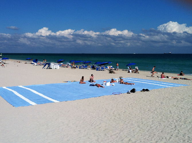 Miami based performance artist Misael Soto is touring his giant terrycloth beach towel up the east coast, and will be installed in New York’s Rockaway Beach on Saturday, August 11, 2012.