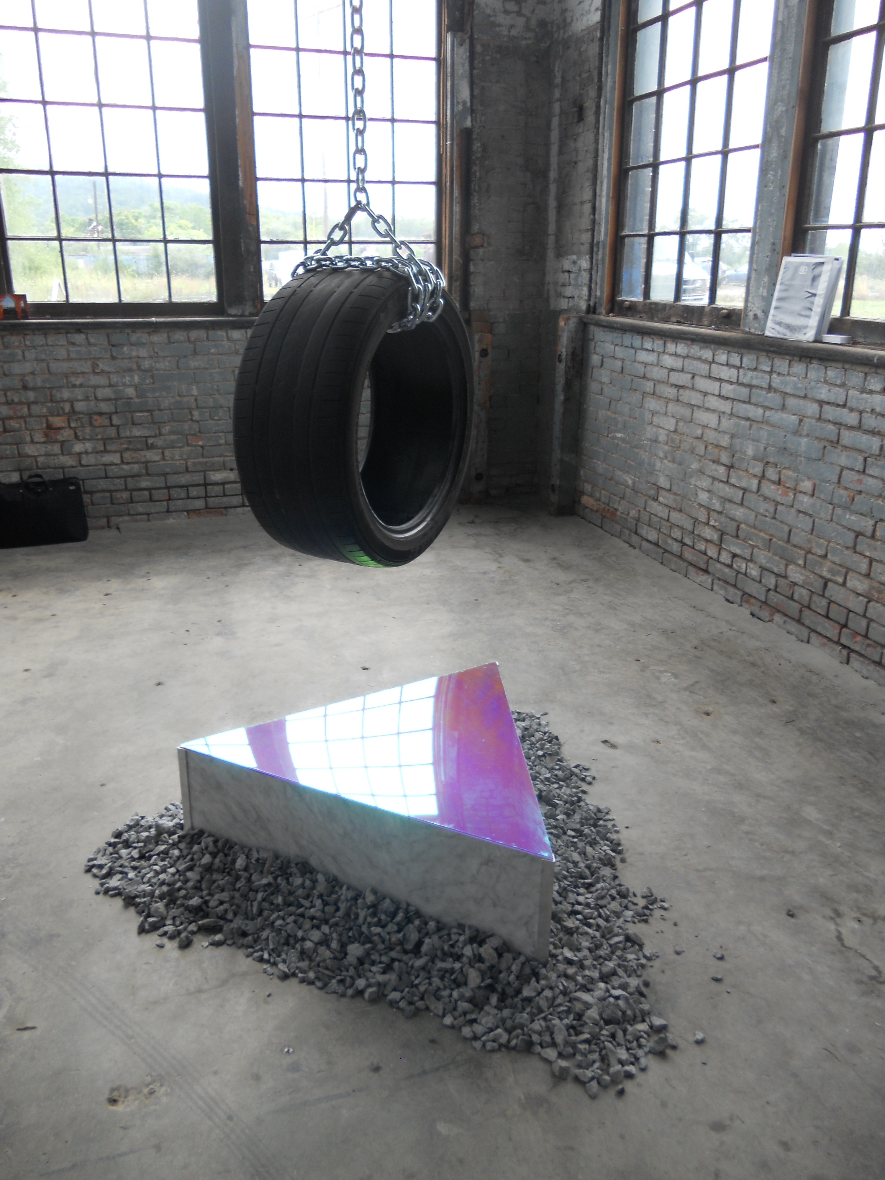 My absolute favorite piece was David Alexender Flinn at envoy enterprises hanging tire, gorgeous combination of industrial and playful with the reflected dreamy pedestal on marble just beautiful. William Stone at James Fuentes Buddah telephone booth, and Mike Hein at ADA sculptures encased in plexi.