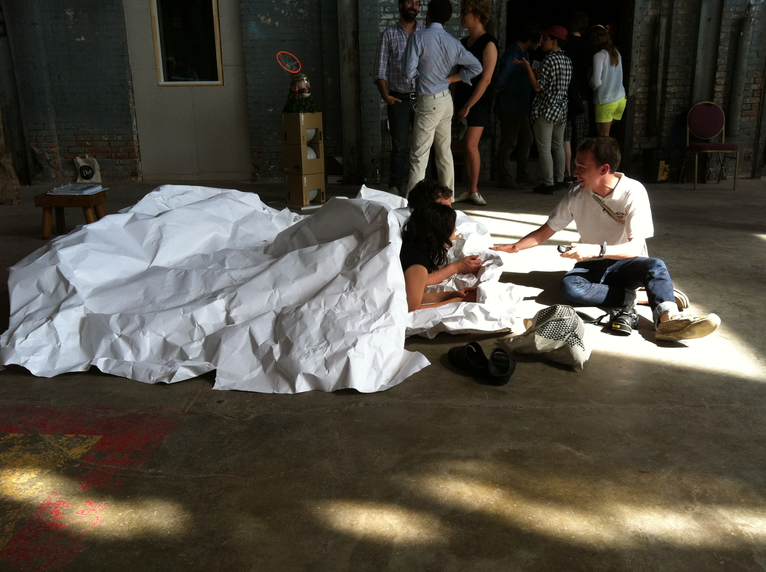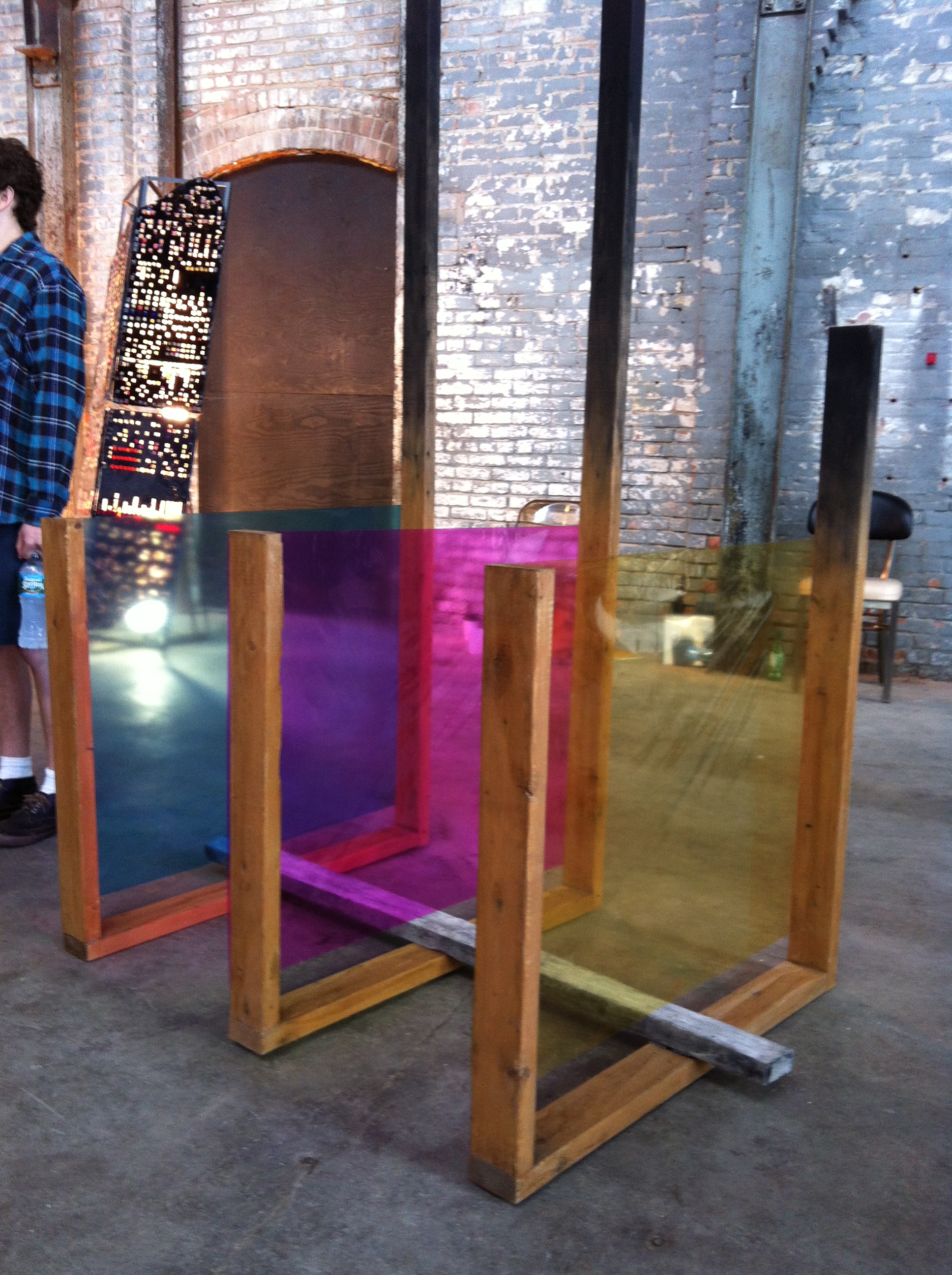 The outdoor installations and performance pieces endured through the on-off sprinkles of rain and flash storms. Especially beautiful space by Christopher Fraser at HIGHLIGHT, a dark room with floor on the floor cut in the middle creating a dramatic play of light and shadow on perception.