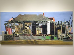 It was very impactful seeing photographs of the buildings beside Mitchnick’s paintings, and allowed the viewers to understand the evolution of the vibrancy of the city and how the beauty is still there in the ruins with bastions of vitality remaining and resurfacing. The sheer scale of Mitchnick’s paintings bring a calm to the nostalgic reflection of seeing familiar suburban homes that you remember just a little differently from your childhood memories.