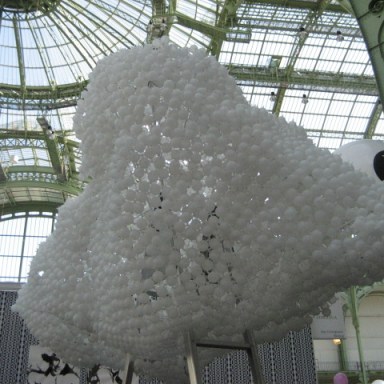 The immense glass domed roof of the Grande Palais envelopes the stands with a warmth and increadable light that illuminates the darkest of paintings, or alternatively these fun asthetically calming pieces. Loris Cecchini, Cloudless uses plastic balls and metal wire, creates these massive organic sculptures suspended which seem to hang so naturally in the space. Nice compliment to Julian Opie’s flat landscape. Opie easily identified by his linear drawings, he represents not realism but the symbols and signs we identify […]