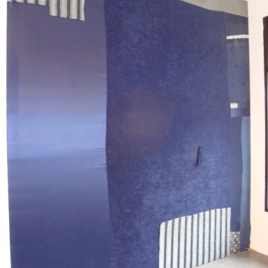 Rashawn Griffin at Smith Stewart Gallery New York based artist Rashawn Griffin senstive poetic installation is comprised of collaged drawings and wall framings. He stretched denims and fabrics around entire portions of the walls in the gallery to frame the architecture as a component of this intimate work. The drawings are collaged and sketched, and the walls extend out in dialogue with the framed pieces.